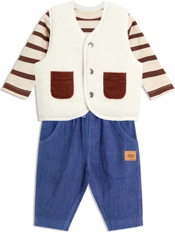 A reversible vest crafted from soft teddy fleece brings versatility to baby's wardrobe when they don this easygoing T-shirt and pants set.