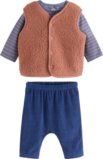 A cuddly vest crafted from soft teddy fleece brings warmth to baby's look when they don this easygoing T-shirt and pants set.