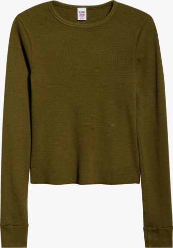 Made of a cotton-enhanced knit with waffle stitches, this dimensional T-shirt is perfect for layering warmth into your look.