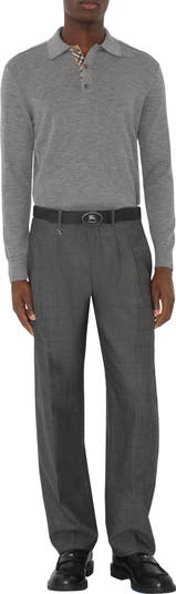 A long-sleeved polo shirt made from lightweight wool. The style is cut to a slim fit and lined with Burberry Check at the placket in our signature sand colourway.||Button placket|Rib-knit trims