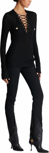 Fine ribbed jersey lace-up top