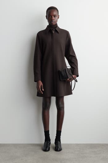 The classic shirt dress is a mainstay of the COS womenswear collection. This refined mini is rendered in a rich espresso tone and designed with curved seams, rounded sleeves, and a concealed placket. Wear it with leather loafers.