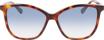 A classic silhouette is set off with bar hardware and a gilded logo at the temples of these sleek sunnies.