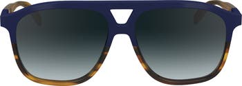 An aviator silhouette brings refined style to scene-stealing sunglasses agleam with logo-etched accents at the temples.