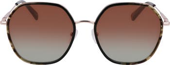 Sleek, shapely frames define stylish rectangular sunglasses touched with charming brand details.