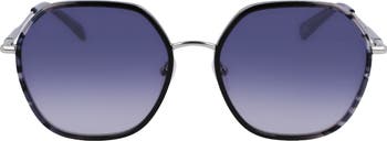 Sleek, shapely frames define stylish rectangular sunglasses touched with charming brand details.