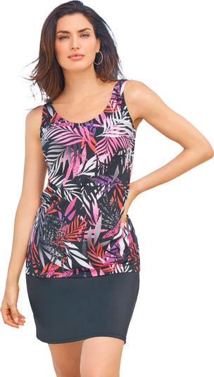 Discover your perfect fit: our scoop neck tankini top combines sporty style and feminine charm. Its longer length offers fuller coverage that's perfect for your active lifestyle, ensuring you stay confident and stylish at the pool or beach. Sewn-in bra cups.