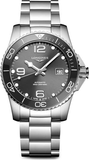 The HydroConquest is a high-functioning watch for the diving enthusiast, designed with a screw-in caseback and crown to ensure water resistance to 30 bars. A unidirectional, rotating bezel provides maximum safety while diving, Super-LumiNova® hands guarantee easy reading under all conditions, and a double-safety folding clasp with special diving extension completes the sophisticated and practical design.