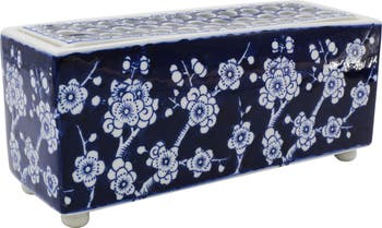 Elevate your floral displays with the beautifully designed Petal Flower Arranger. With its intricate blue floral pattern and modern rectangular shape, this piece offers both functionality and elegance, making it easy to arrange flowers in a way that enhances any room.