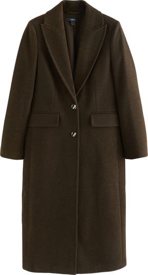 Extra length adds even more cozy coverage to a wear-everywhere coat closed with sculptural buttons and mostly made from feel-good fibers.