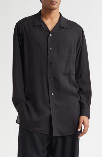 Fluid fabric sets a languid drape on this longline button-up that moves with a quiet sway at every step. A retro notched collar opens the neckline and cues a relaxed mood that still reads sharp.