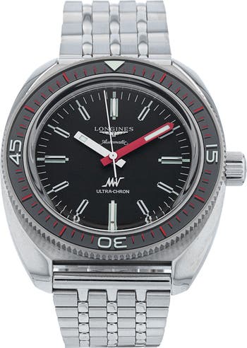 From Longines' Heritage collection and based on a timepiece typical of the 1930s comes a sleek Swiss-made watch powered by a precision automatic movement. A bracelet strap completes the polished look.