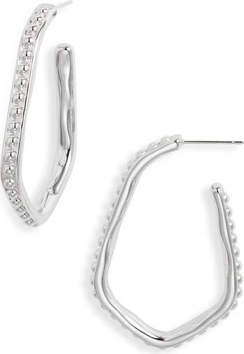 Sleek metal beads bubble up the outer rim of these elongated huggie hoops that add polished industrial flair to your stack.