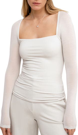 Amp up your staples rotation with this stretchy, square-neck top framed with long sleeves for a slightly sheer effect.