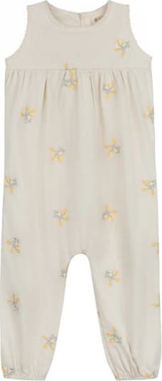 The Holland Collection is a celebration of soft pastels, delicate embroidery, and breezy summer knits. From woven dresses and long rompers to coordinating wave knit sets and baby layette, every piece is designed to feel classic, light, and perfectly matched. This long woven romper is crafted in soft cotton and detailed with beautiful embroidery for a timeless, airy look. Pair it with the wave knit cardigan from this collection for a beautifully coordinated finish.