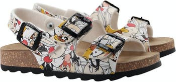 The Looney Tunes Sandals featuring an all-over print, an open toe, an ankle strap with a side buckle fastening, a branded insole and a flat rubber sole.