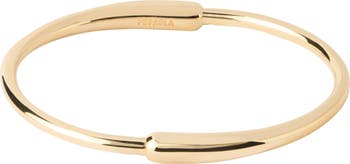 Modern bangle with asymmetric design featuring two elonganted drop-shaped motifs