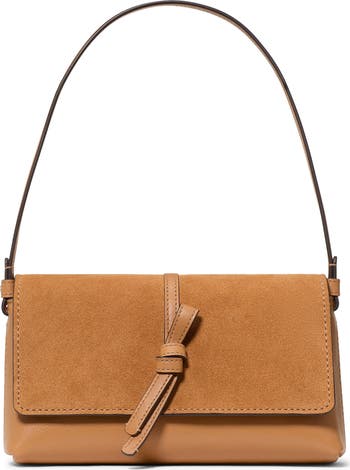 Smooth leather and supple suede bring textural interplay to an east/west shoulder bag featuring a a knotted accent for a signature flourish.