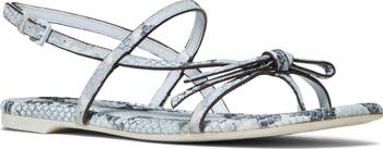 Spice up your sunny-day look with this snakeskin-embossed leather sandal that's strappy and tied up with a bow.