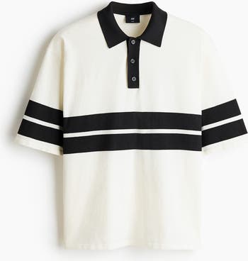 Short-sleeved polo shirt in a soft knit with a collar, button placket and a straight hem. Loose fit for a generous but not oversized silhouette.