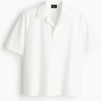 Short-sleeved polo shirt in a soft knit made from a cotton blend featuring a resort collar, a button placket with one button and a straight-cut hem with a small slit at each side. Loose fit for a generous but not oversized silhouette.