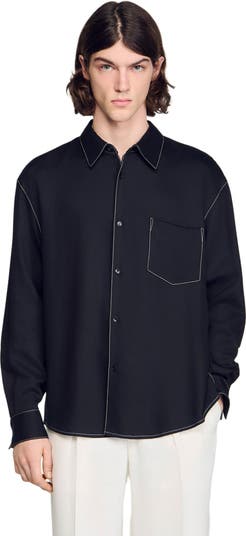 Loose-fit shirt with contrast stitching, front button fastening and patch pocket.