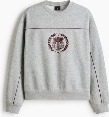 Top in heavyweight sweatshirt fabric made from a cotton blend with a soft brushed inside and contrasting-colour piping. Round, rib-trimmed neckline, yoke at the front, dropped shoulders, long sleeves and wide ribbing at the cuffs and hem. Loose fit for a generous but not oversized silhouette.