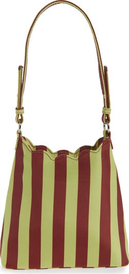 A scalloped topline boosts the charm of this slender shoulder bag constructed from recycled-polyester twill in a softly structured silhouette.