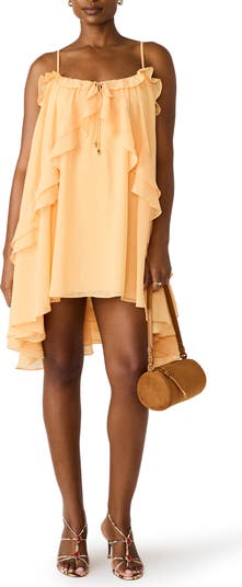 Don't shut that suitcase without popping in a darling dress fluttered in ruffles and offered with a floaty high-low hemline design that begs you to twirl.