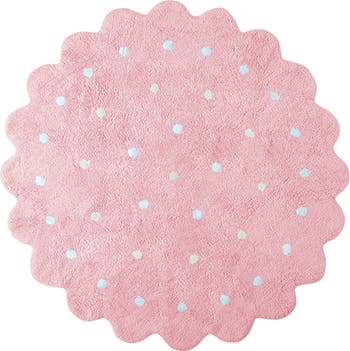 Little Biscuit Polka Dot Washable Cotton Blend Round Rug