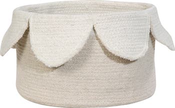 Pretty petals add a sweet flourish to a handmade basket that provides ideal toy storage while making any nursery extra charming.