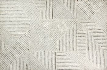 Mixed geometries balance the soft, loopy textures of a rug made of washable wool in neutral tones that look smart in any room.