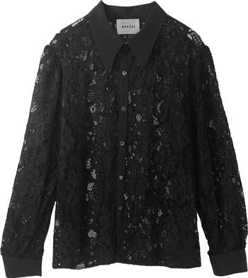 The Lorena button down lace blouse offers elegant sophistication in a timeless silhouette. Luxurious and richly weighted lace are accented with a solid trim collar, placket, and cuffs. A beautiful face framing design, with a peaked collar, slightly shirred full sleeve, and shirttail hem.