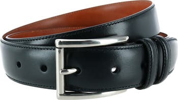 The Lorenzo Dropped Edge Leather Dress Belt is a handsome belt to have in your closet to complete any look you are trying to achieve. This leather belt features a double keeper with a tailored end, giving you a classic look that can go with any outfit. The dropped-edge design and attractive meticulous stitching will catch the eyes of those all around you. Simply pair this with a suit and tie or even a pair of khakis depending on your special occasion. The elegant square nickel buckle tops off this versatile belt and makes it a must-have. Please order a size up from your waist size for the best fit. For example, if you wear a size 32 in pants, please order a size 34 belt. To ensure the best fit, please see our belt size guide.