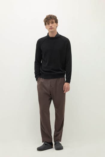 - A classic crewneck silhouette with relaxed raglan sleeves, finished with refined ribbed trims
