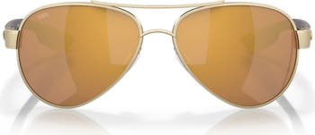 Polarized lenses block glare for a clear view in these cool pilot sunglasses branded by a wave on the temple.