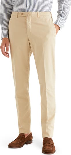 Ultrasoft garment-dyed stretch cotton brings all-day comfort to these tailored pants with a flat front and pressed center pleats.
