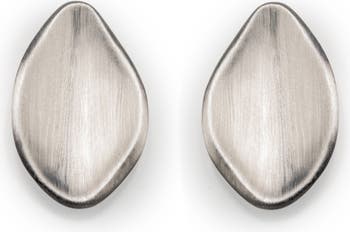 Set of pear shaped earrings with brushed surface. Made with premium rhodium-plated brass.