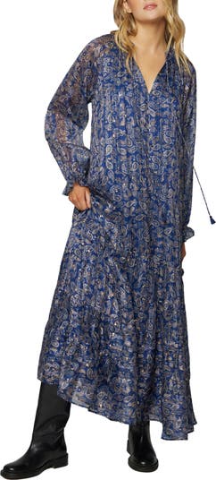 Lost + Wander Wish Upon Paisley Print Split Neck Long Sleeve Maxi Dress, Alternate, color, Navy Gold Paisley