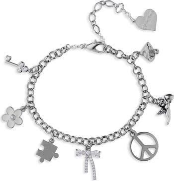 The missing piece to your look is found with this whimsical charm bracelet full of character and sparkles.