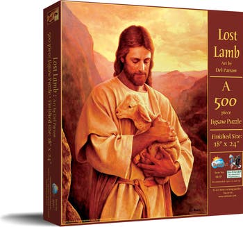 Explore a serene and soothing challenge with the Lost Lamb 500 Piece Jigsaw Puzzle by SunsOut, designed exclusively for adults. This puzzle brings to life Del Parson’s tranquil artwork, featuring a peaceful embrace between a shepherd and lamb. Each puzzle is made in the USA, using high-quality recycled cardboard and eco-friendly soy-based inks, showcasing SunsOut's commitment to unmatched craftsmanship, environmental consciousness, and customer satisfaction. Enjoy the seamless interlock of each piece and the finished 18" x 24" masterpiece, embodying serenity in art and spirituality. SunsOut puzzles not only pose a captivating challenge but also invite storytelling, reflection, and connection with poignant religious imagery. The Lost Lamb puzzle is an ideal gift for puzzle enthusiasts or a thoughtful present for a loved one, offering the chance to piece together quality craftsmanship and meaningful artwork. This puzzle comes with an assurance of prompt resolution of any issues with missing or damaged pieces, and the joy and satisfaction of completing a tranquil piece of art. Enjoy the peace of mind that comes with supporting a woman-owned small business committed to sustainable practices in puzzle-making.