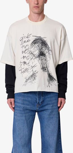 Thermal-knit sleeves create the layered look of this scribbled-graphic T-shirt with a vintaged wash that gives this style the look and feel of one you've loved for years.