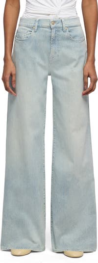 The perfect mix of casual and dramatic, these stretch-enhanced stripe jeans are designed to contour the waist and hips before falling into extralong wide legs.