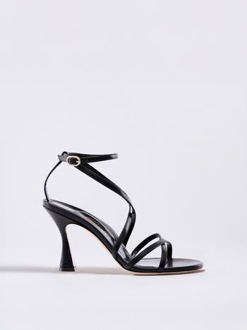 A sexy, strappy sandal with all-day support. And one of our best selling styles for a reason. This go-with-everything sandal features an easy-wearing 85mm (3.3”) flared stiletto heel, brushed gold hardware and our twice-patented invisible insole. Style them with everything from denim to dresses.
