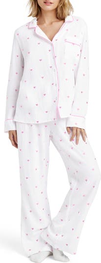 Scattered hearts lend light romance to these classic pajamas cut from breathable cotton gauze for nightlong comfort.