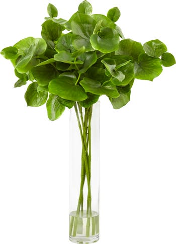 Bring tranquility to your home with this Lotus Branch arrangement. Slender, bundled stems lead up to the , rounded lotus leaves for an eye catching arrangement. Add to a home office, decadent dining room or elegant entryway for some warm decor. Comes in a clear cylinder vase with faux water.