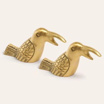 Lotus Brass Bird Decorative Object 2 Pcs Set