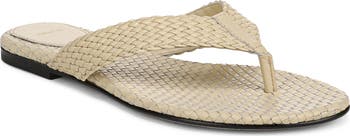 Woven leather enhances the summery vibe of this texture-rich flip-flop ready for sunny days and weekend getaways.