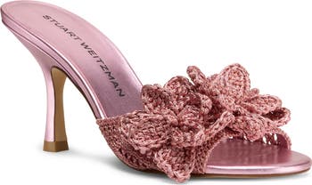 Crochet flowers create a dimensional effect on this lofty sandal that's a surefire bet for sunny-day sophistication.