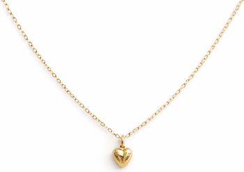 A small puffed heart with just enough dimension to catch the light. At 1/4 inch it's subtle — the kind of detail you notice up close rather than across the room. Wear it alone on a shorter chain or layer it with other pendants. It sits perfectly either way.\nSimple, personal, and made to be worn every day.\n14k gold fill. 1/4" puffed heart pendant. Adjustable chain. Lobster clasp.